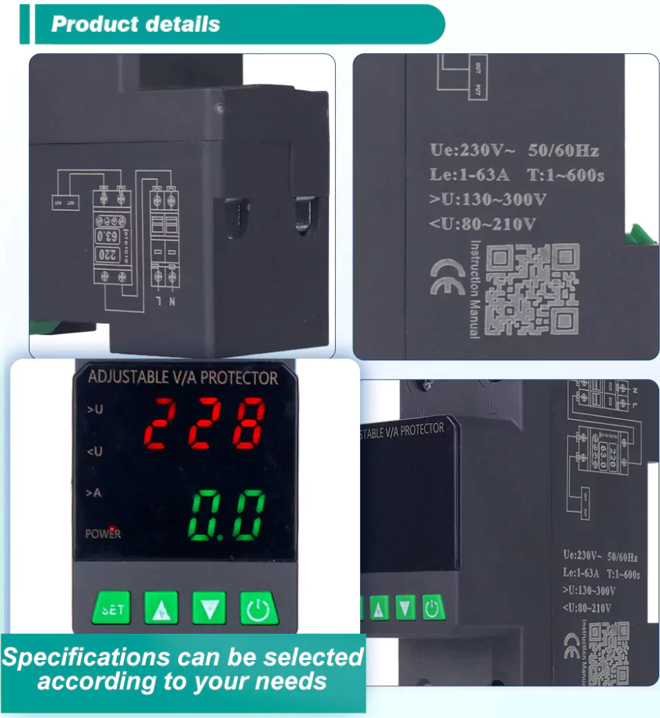 4. รีเลย์ตัวป้องกันแรงดันไฟฟ้า 2 เสามีการออกแบบแบบแยกส่วนสำหรับการติดตั้งแทร็กง่าย ๆ เพิ่มรูปลักษณ์และการใช้งาน